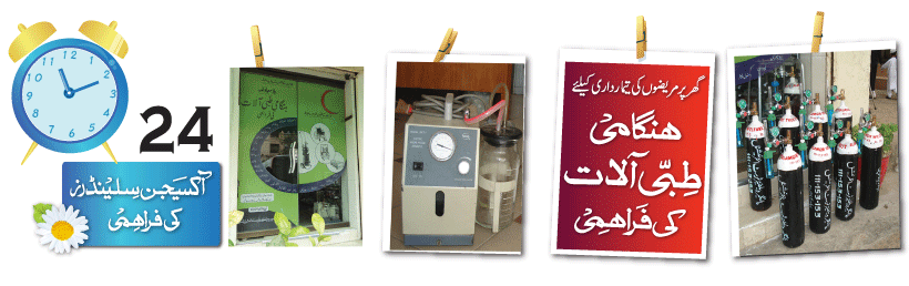 Alamgir Welfare Trust also offers important medical equipments for patients who are at home and are recovering. These include oxygen cylinder, suction machines, chairs, beds completely free by just depositing a security amount as the equipments are returned so is the security deposit.